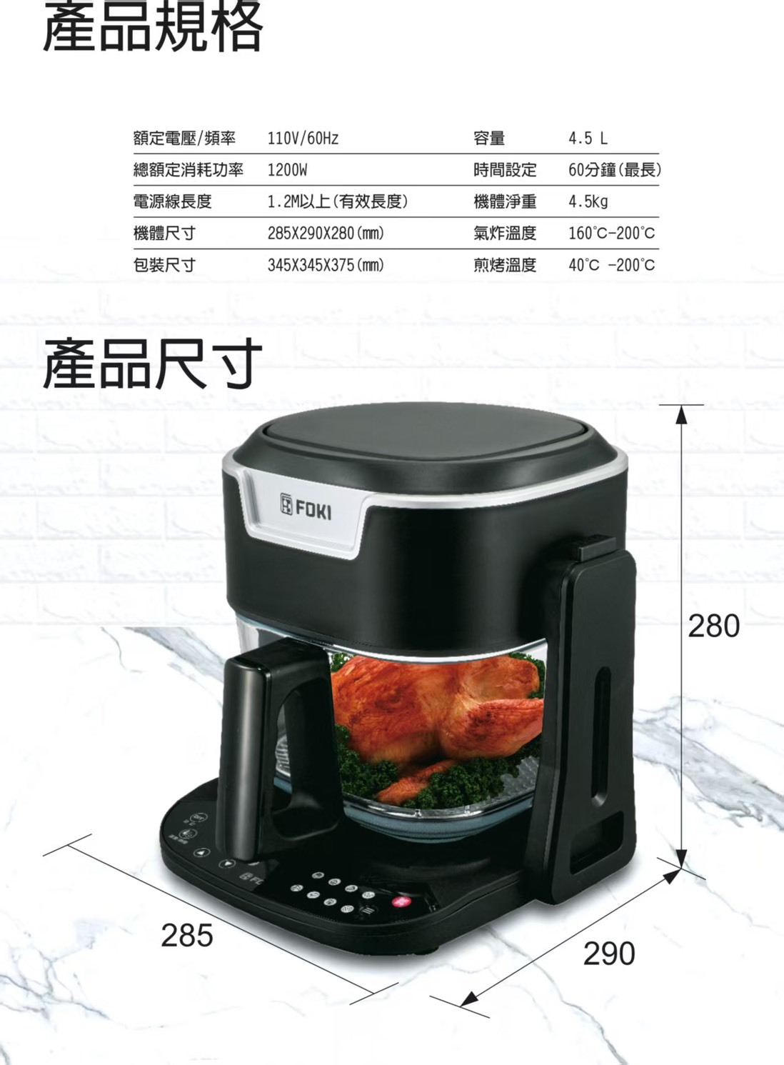 氣炸溫度:160℃~200℃