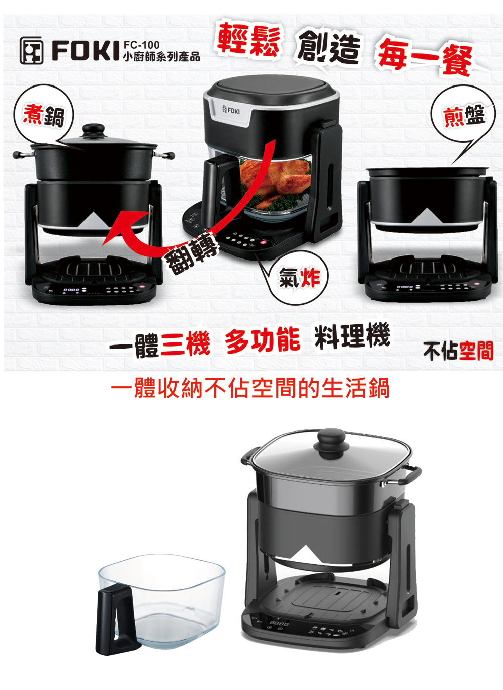 氣炸、燒烤、火鍋多用途
