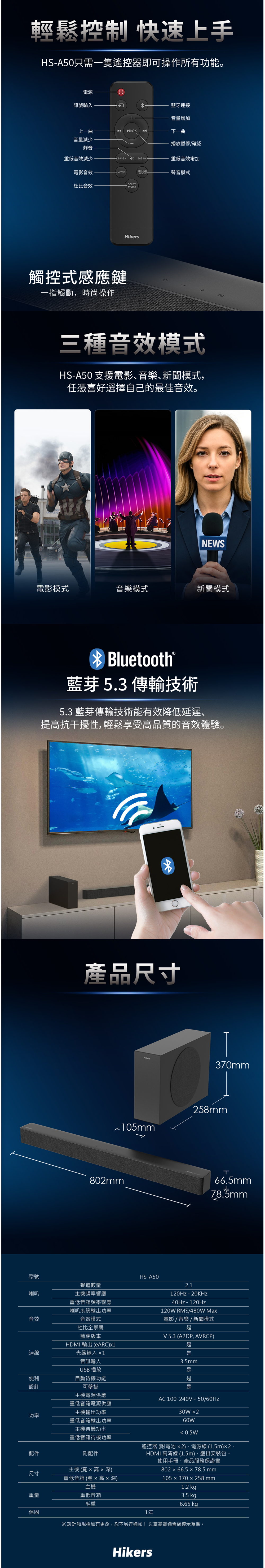 3種音效模式(電影/音樂/新聞)