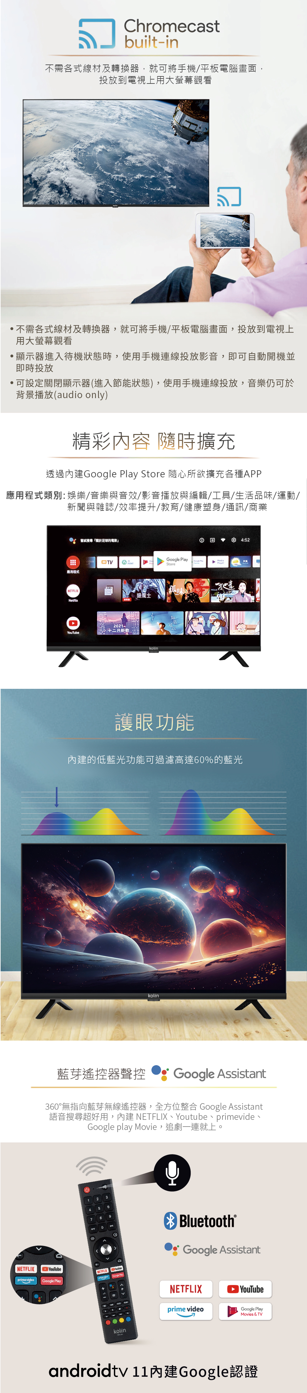 .智慧聯網功能:內建 YouTube/Netflix/Google Play