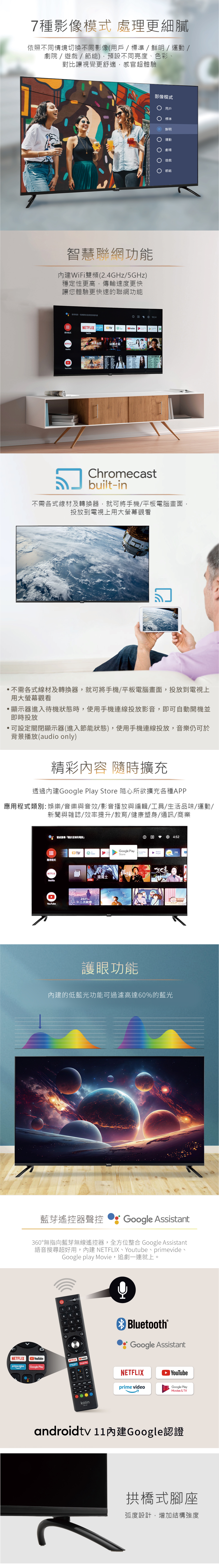 .智慧聯網功能:內建 YouTube/Netflix/Google Play