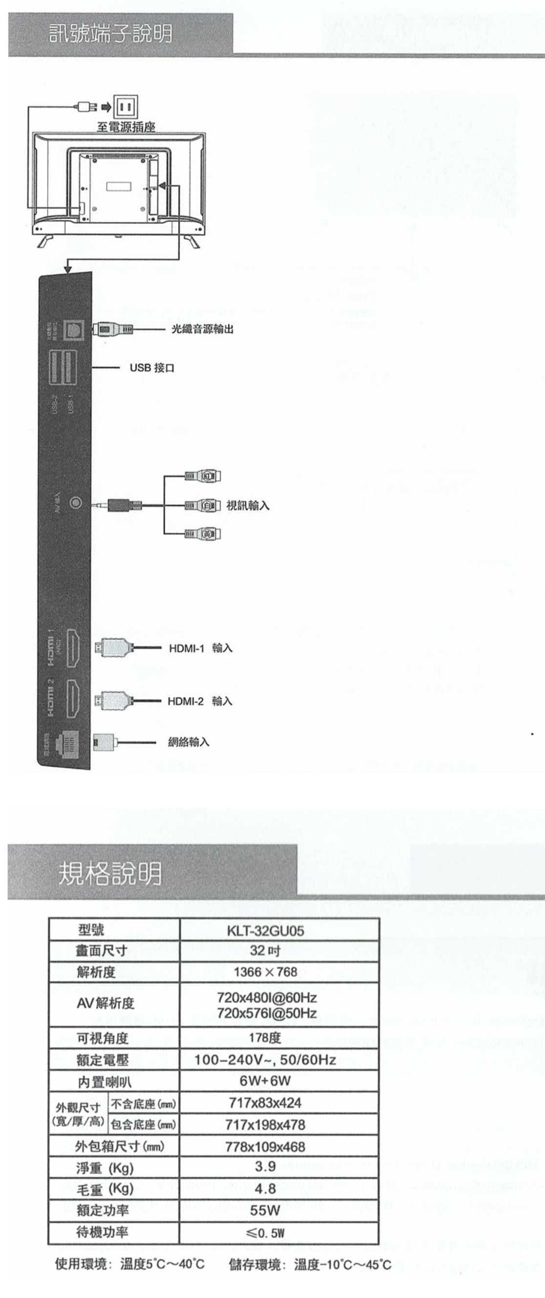 影音輸入 HDMI 1.4 *2 USB*2 AV(mini) *1