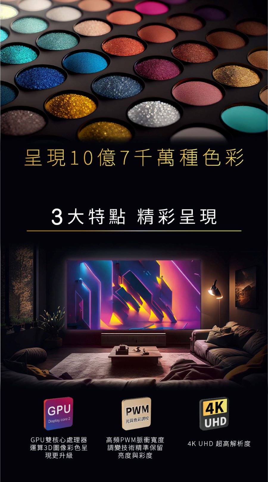 HDMI(2.1) x 3組、AV x 1組、USB x 2組
