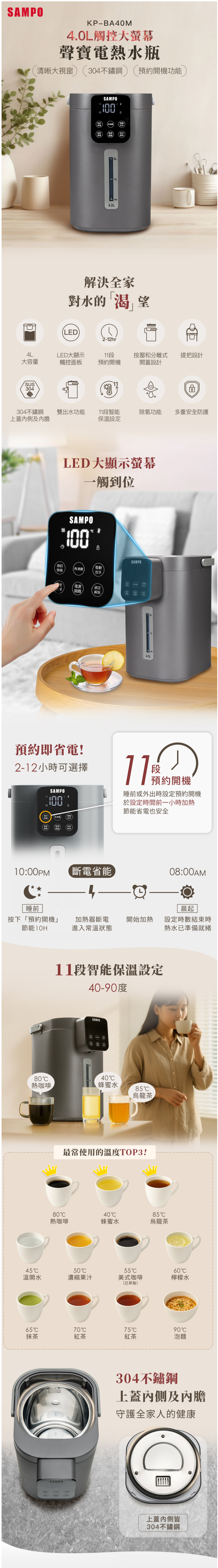 11段智能保溫設定(40-90度),