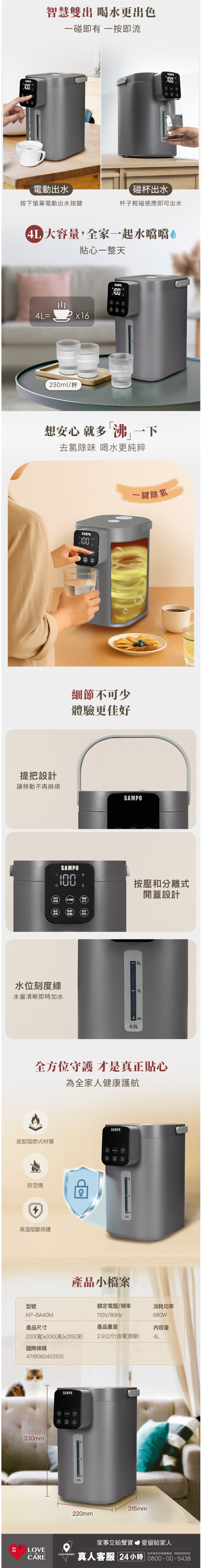 4L大容量,滿足全家飲水需求。