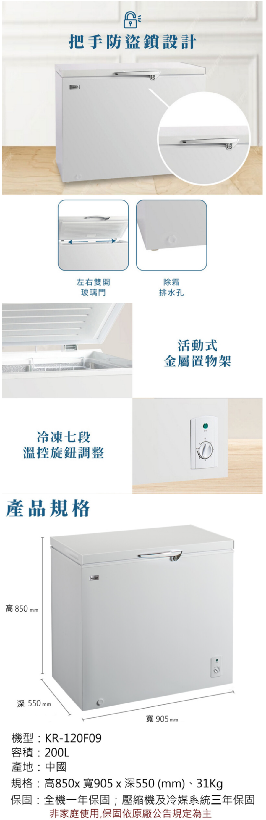 冷凍七段溫控旋鈕調整(-10度C~ -25度C)