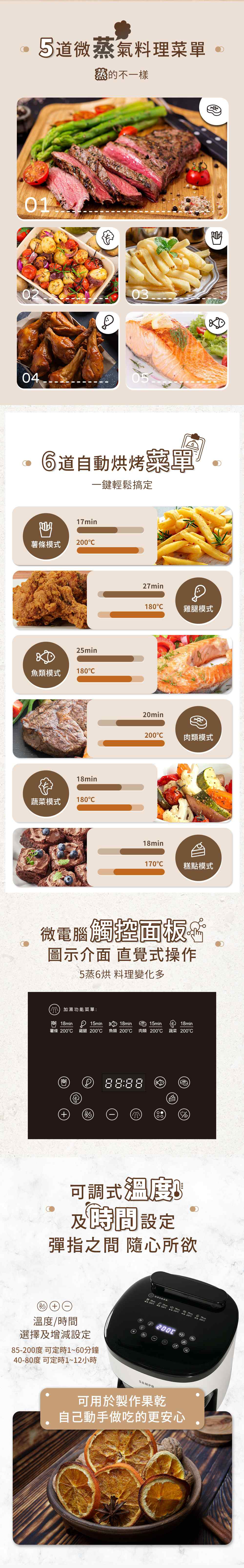 40-80度:1分鐘-12小時(可用於果乾製作)