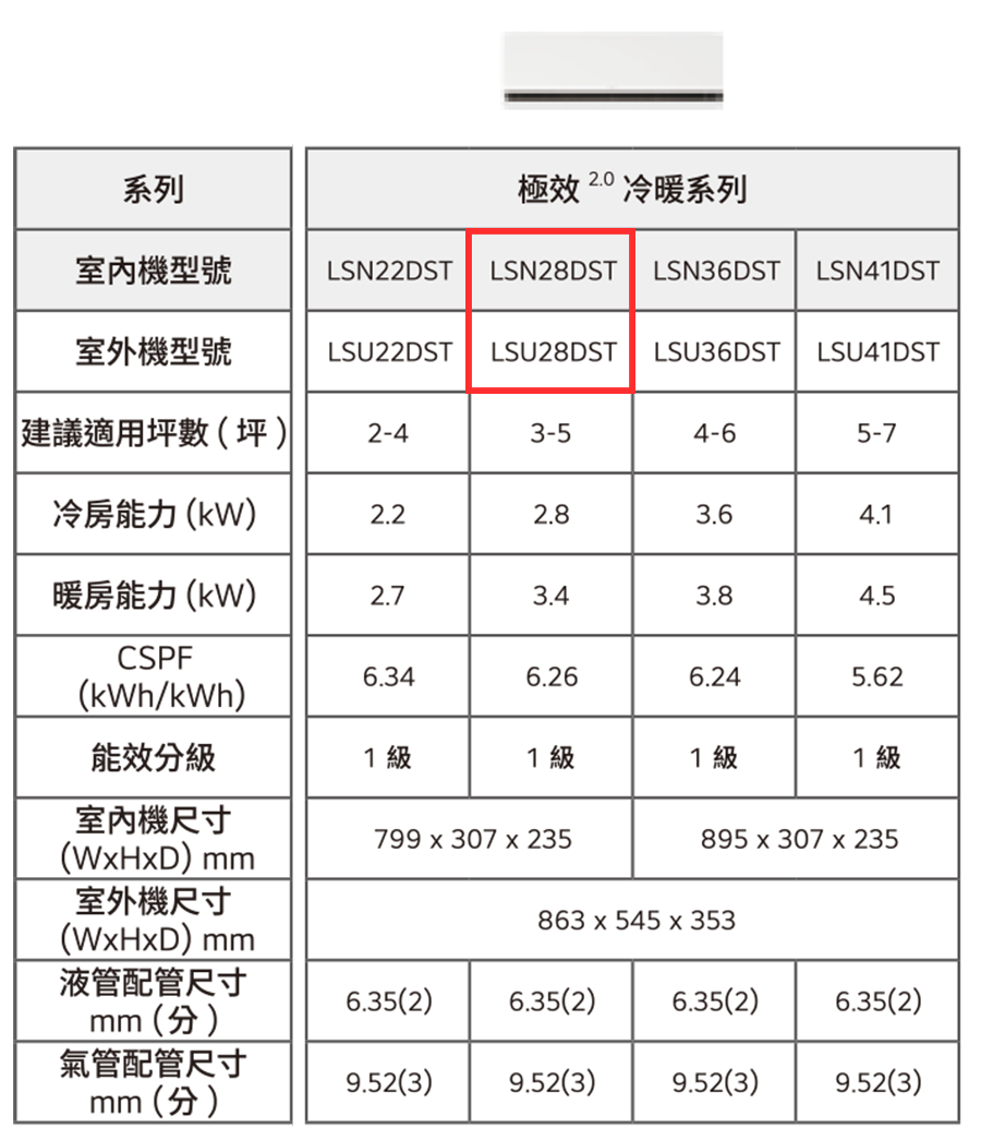 (可議價) LG 樂金 3-4坪 極效2.0系列 變頻(冷暖)Wi-Fi 雙迴轉空調(LSU28DST+LSN28DST)