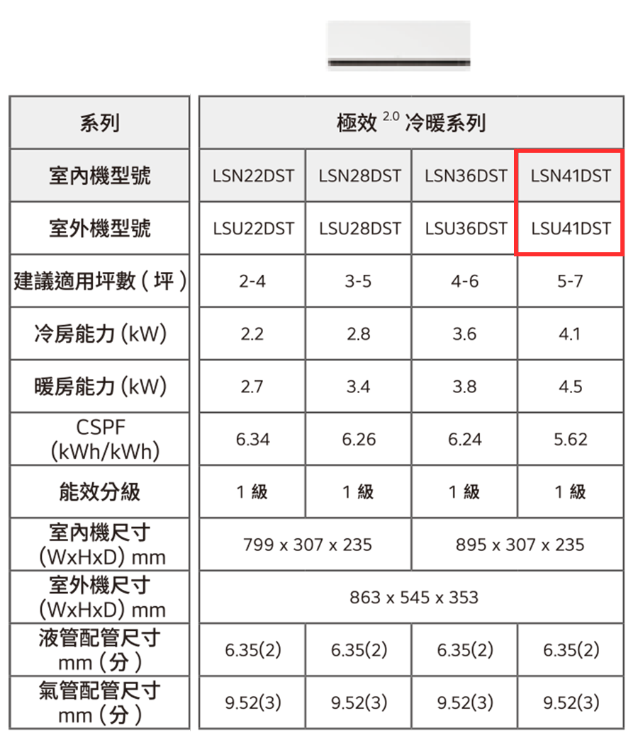 (可議價) LG 樂金 5-7坪 極效2.0系列 變頻(冷暖)Wi-Fi 雙迴轉空調(LSU41DST+LSN41DST)