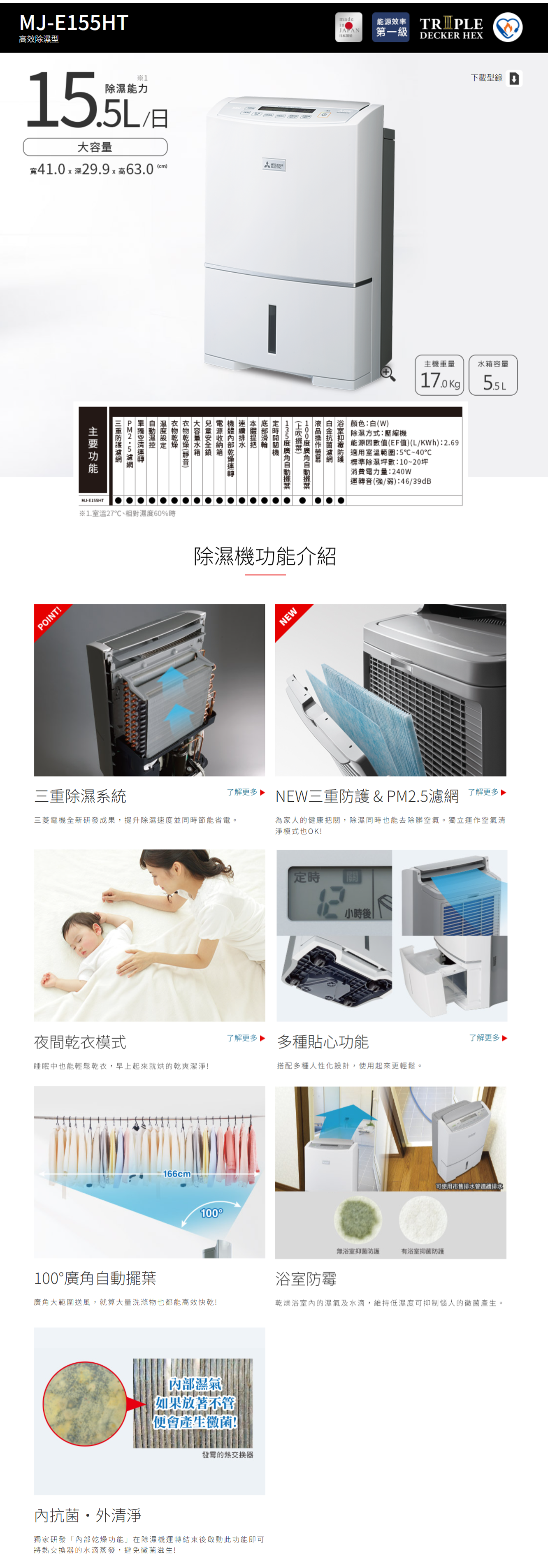 創新三重除濕系統、兼具除濕力及省電力