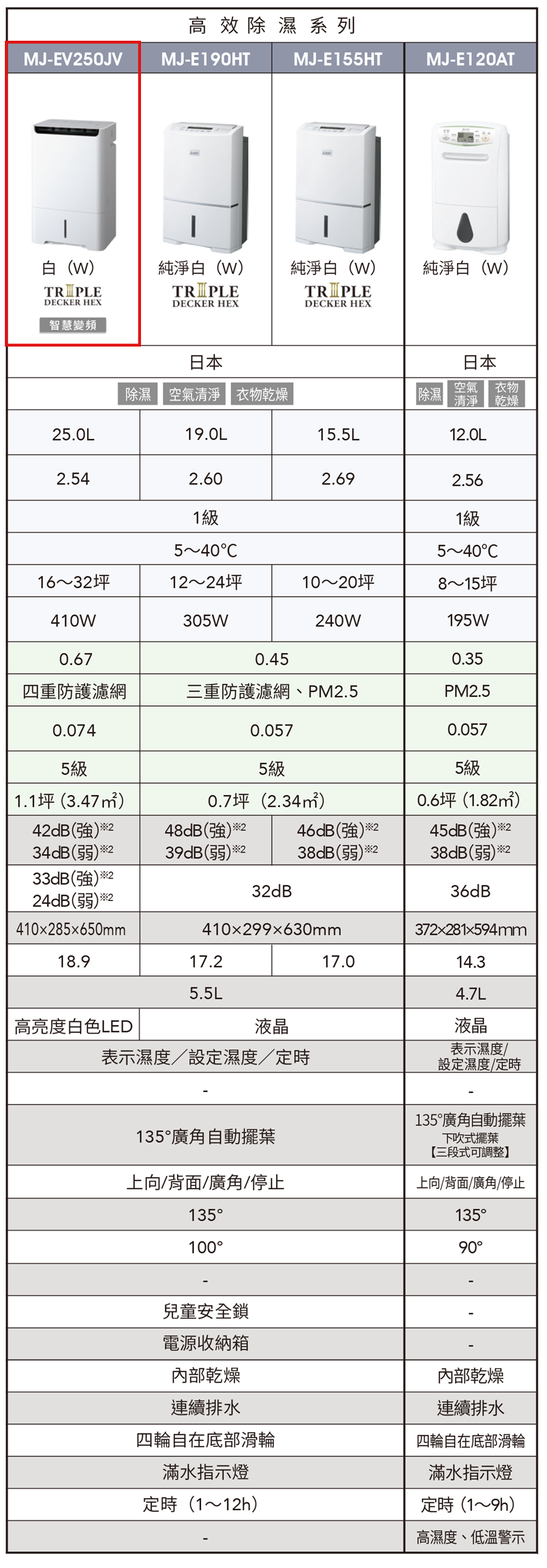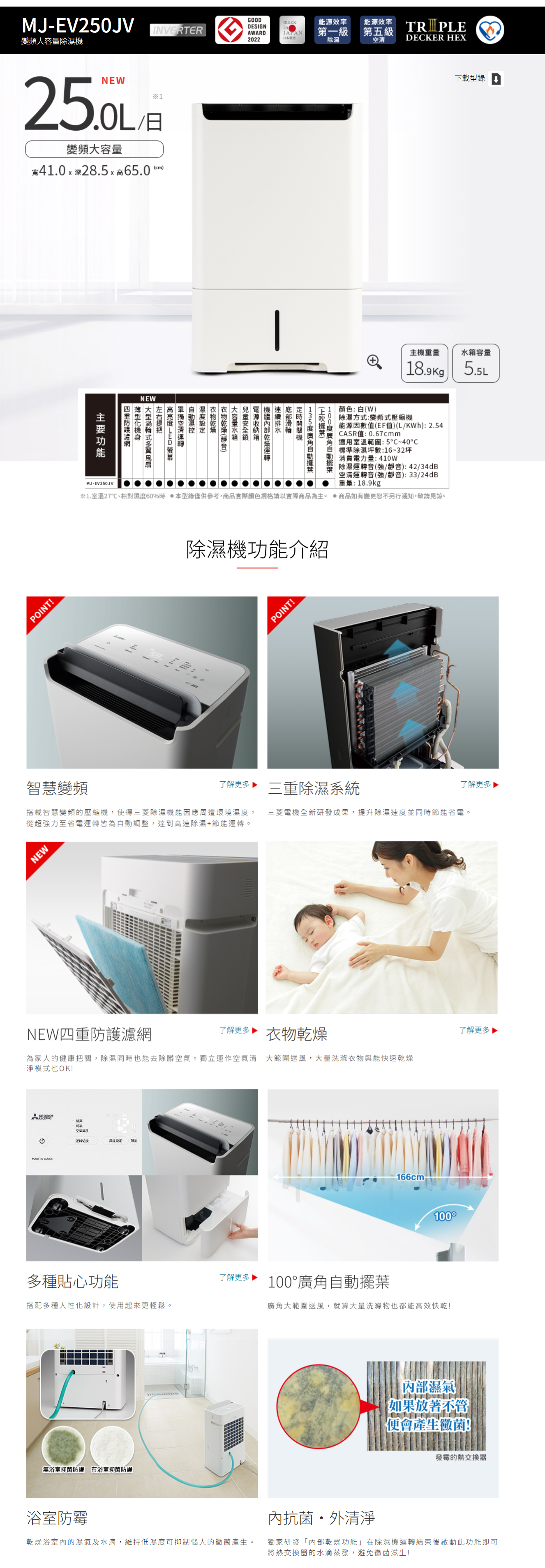 除濕能力:25公升/日(室溫27°C,相對溼度60%)
