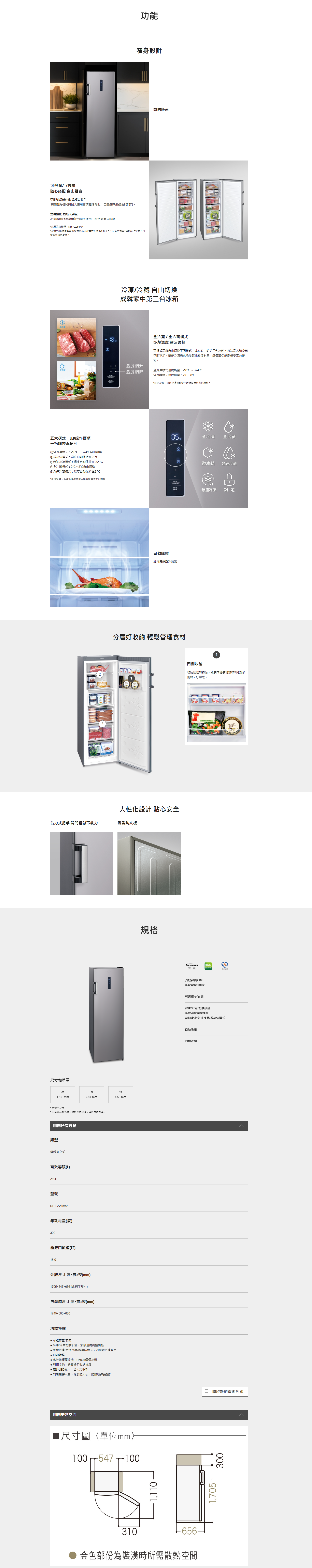急速冷凍/急速冷藏/微凍結模式,四星級冷凍能力