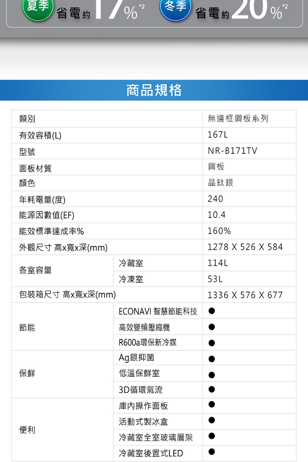 有效容積167L