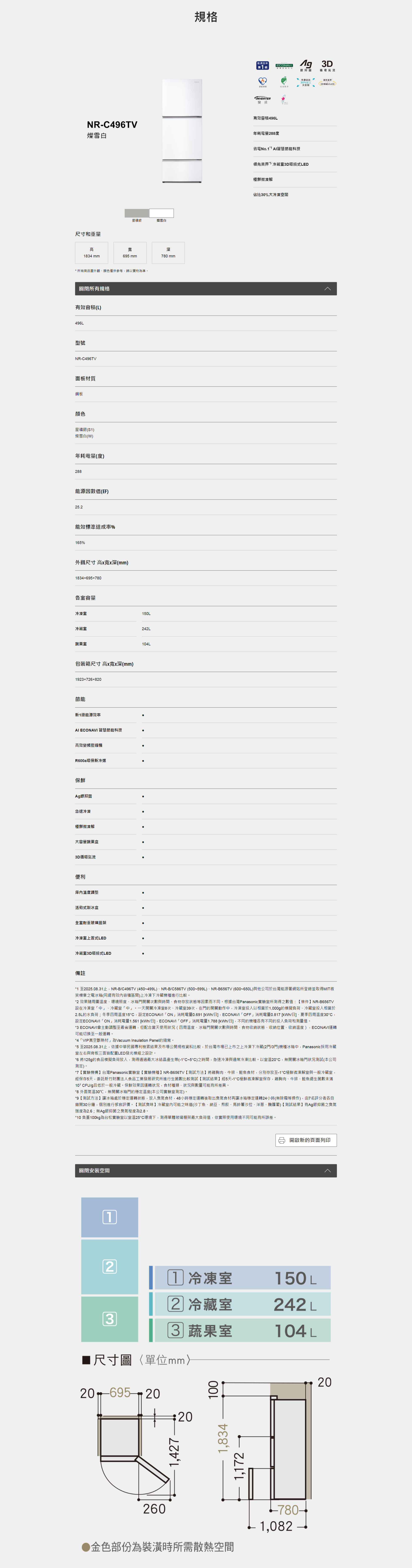 有效容積496L