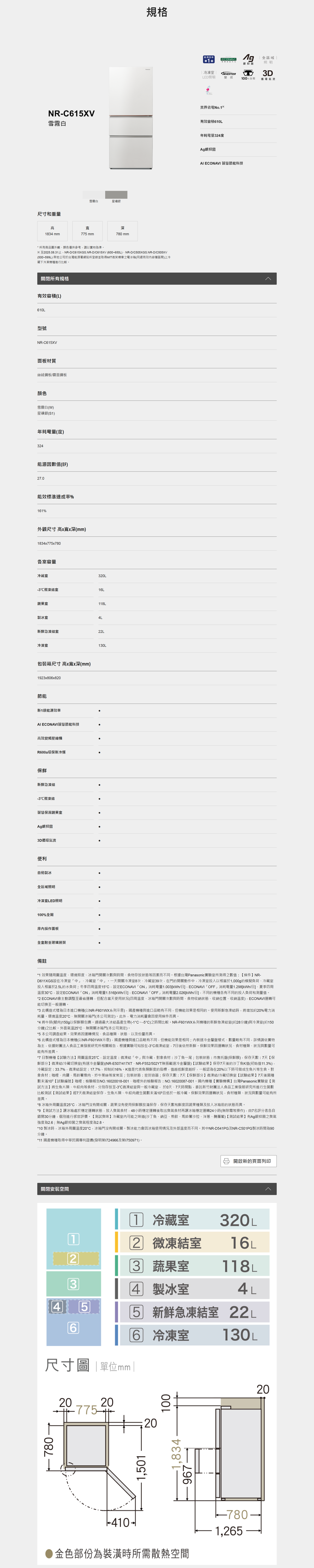 有效容積610L