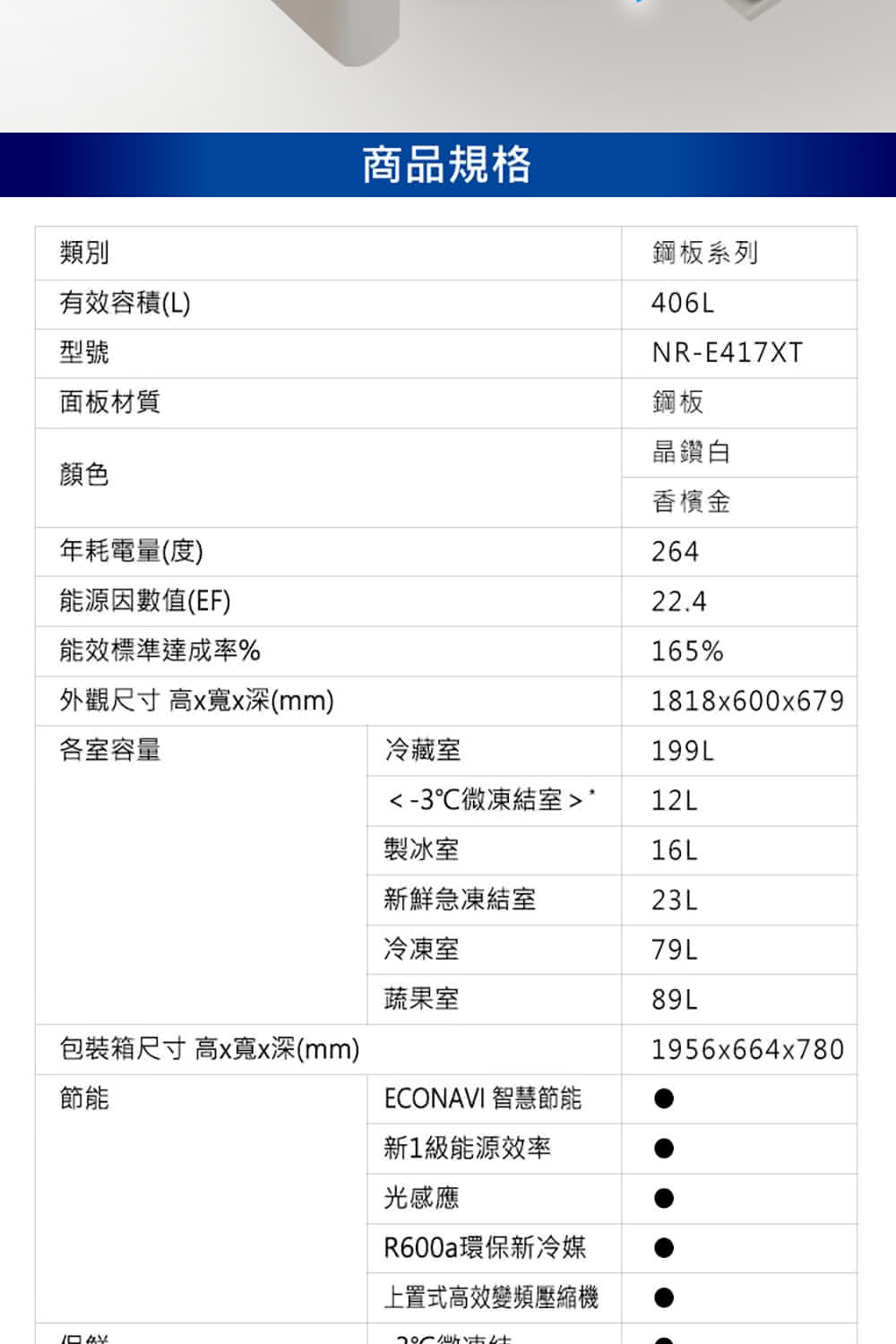 有效容積406L