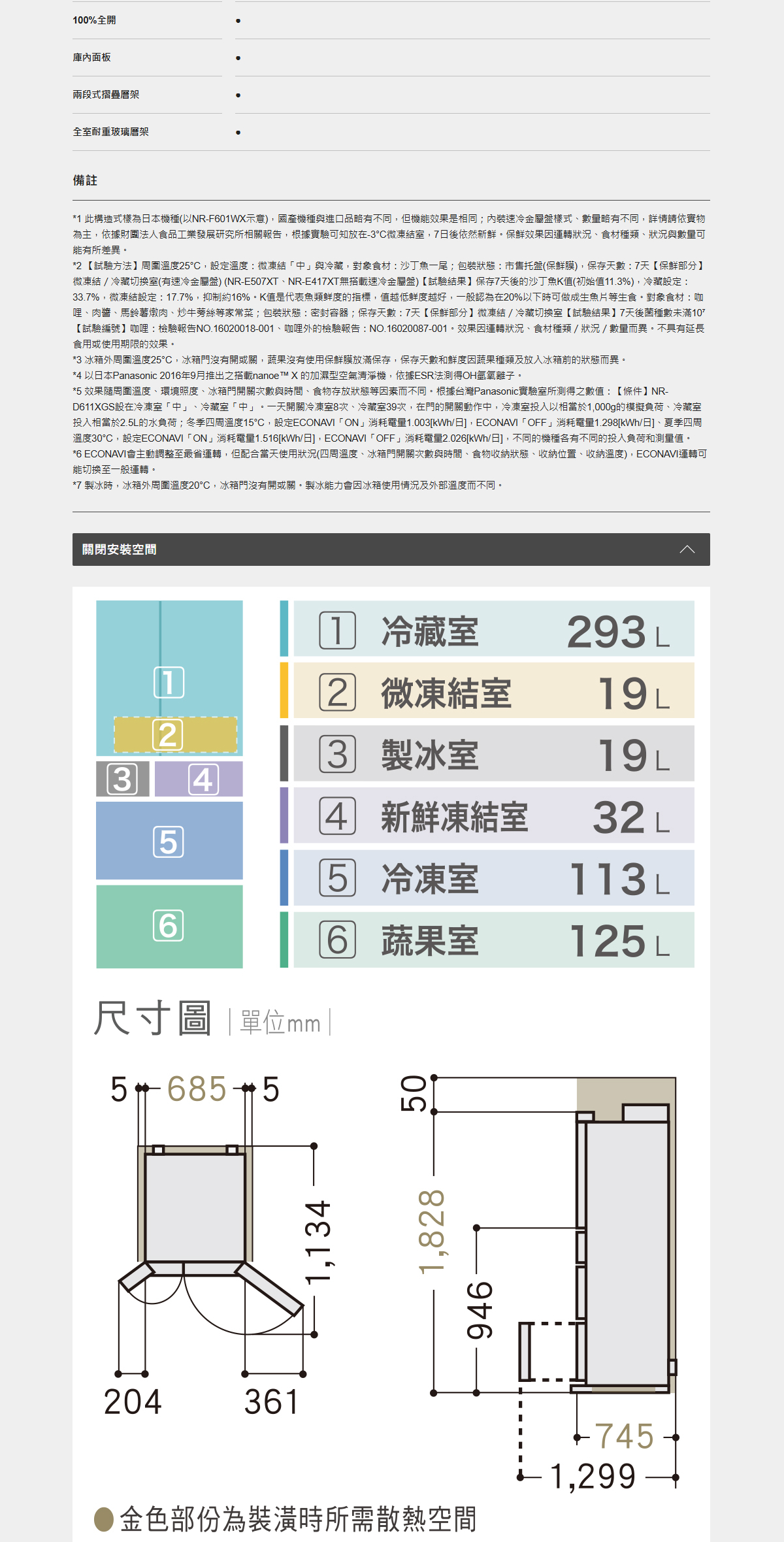 有效容積601L