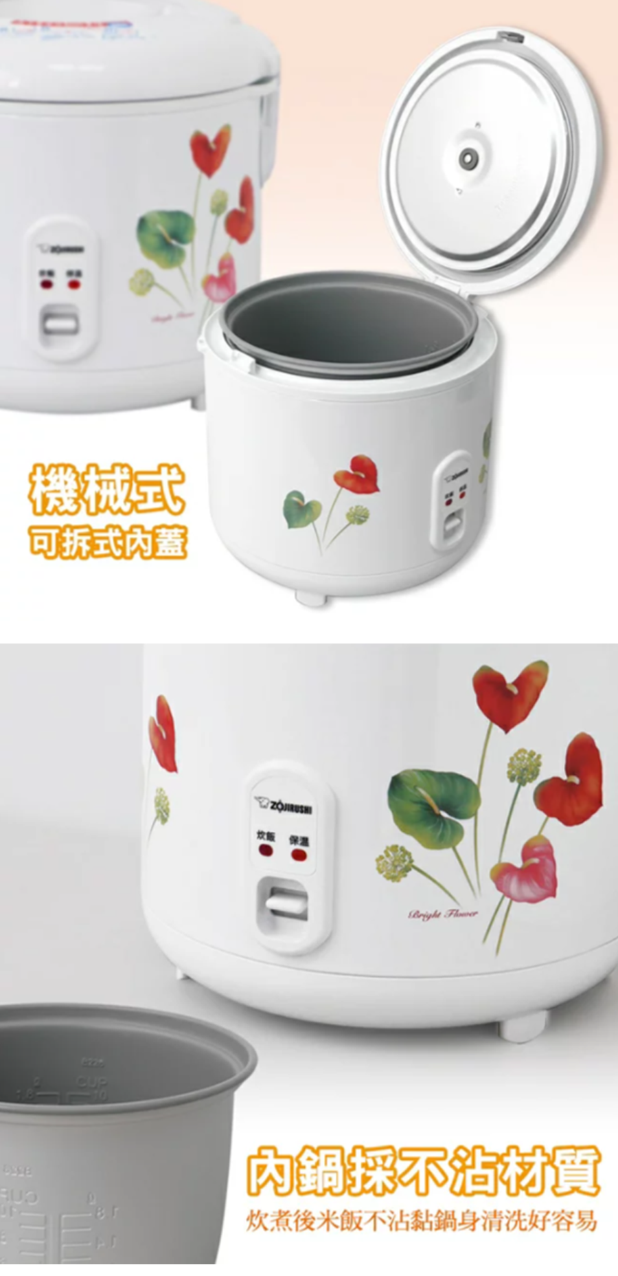 內鍋採不沾材質,炊煮後米飯不沾黏鍋身,