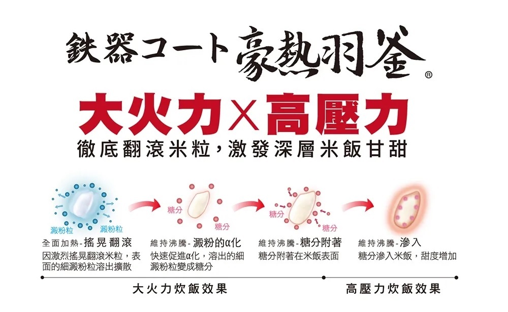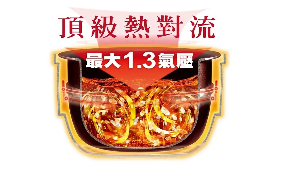「頂級熱對流」大火力×高壓力(最大1.3氣壓)翻滾米粒,