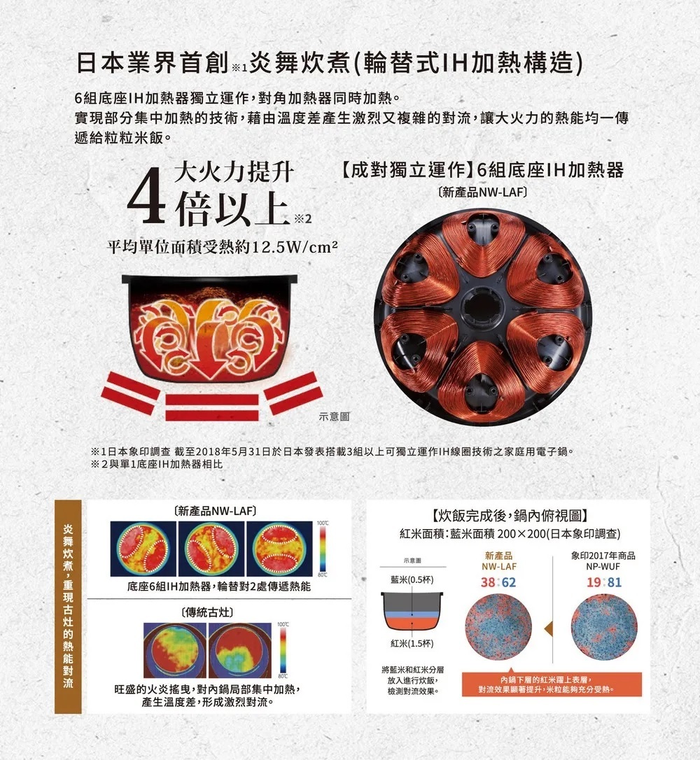 日本業界首創!底座6組輪替式IH加熱線圈(提升4倍火力)