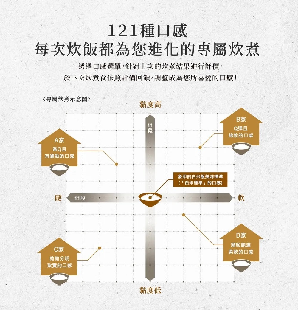 「專屬炊煮」功能,量身打造屬於自己的121種口感