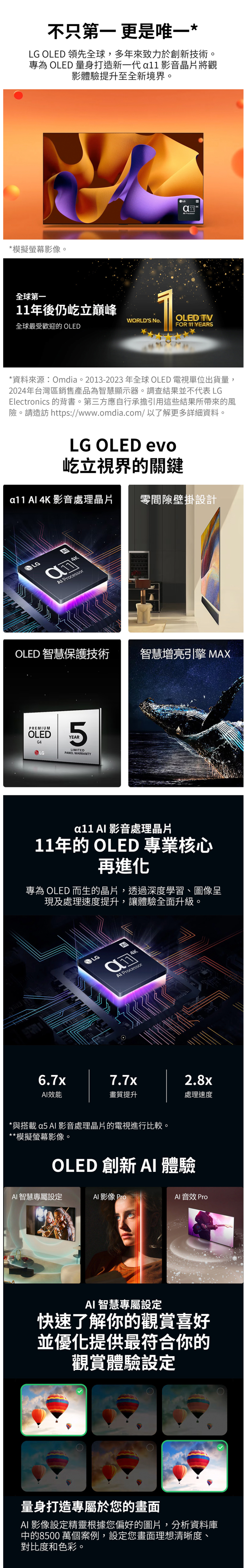 LG OLED 連續11年銷售 NO.1 & 多項創新技術唯一*