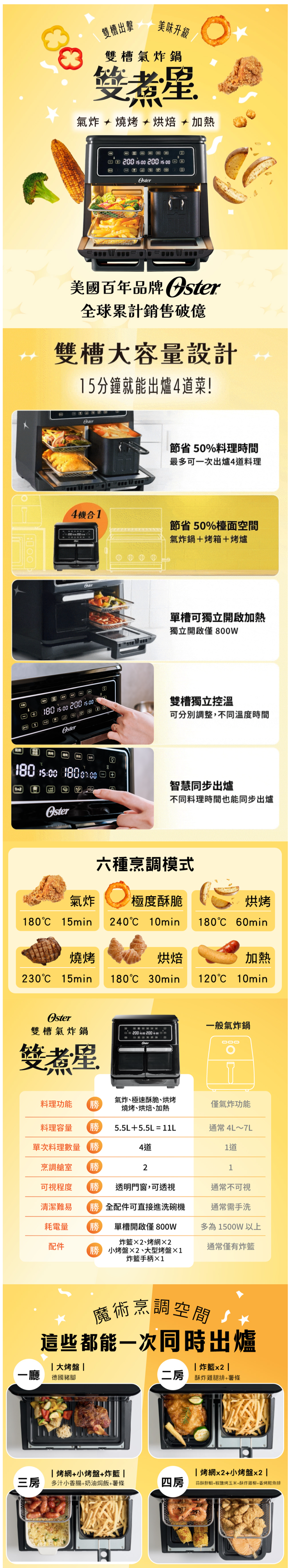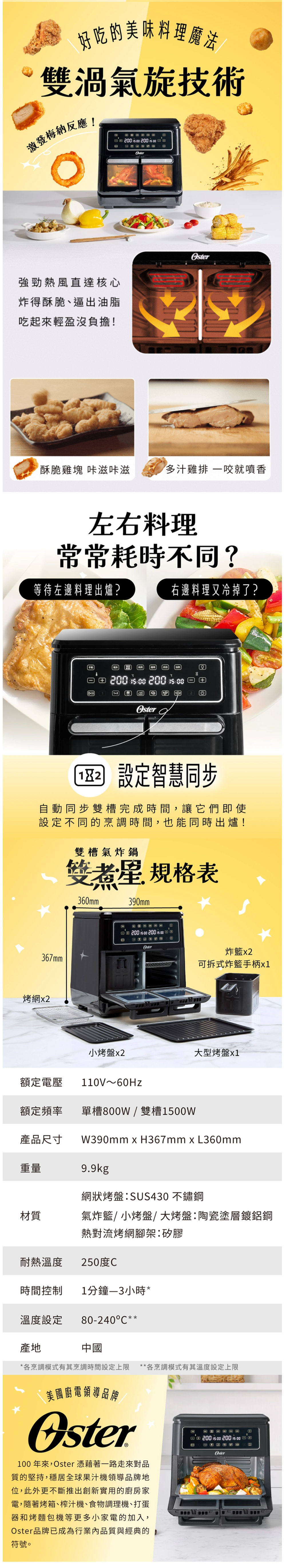 包含 2 個氣炸籃、2 個烤網、2 個小烤盤、