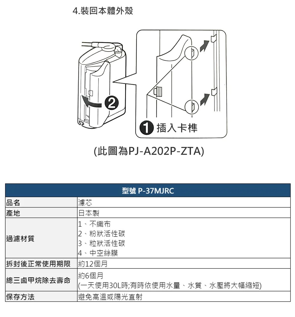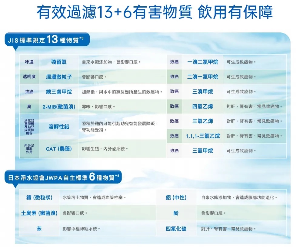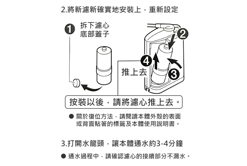 濾心壽命約1年 (日使用30公升/日)/濾心壽命約2年 (日使用15公升/日)