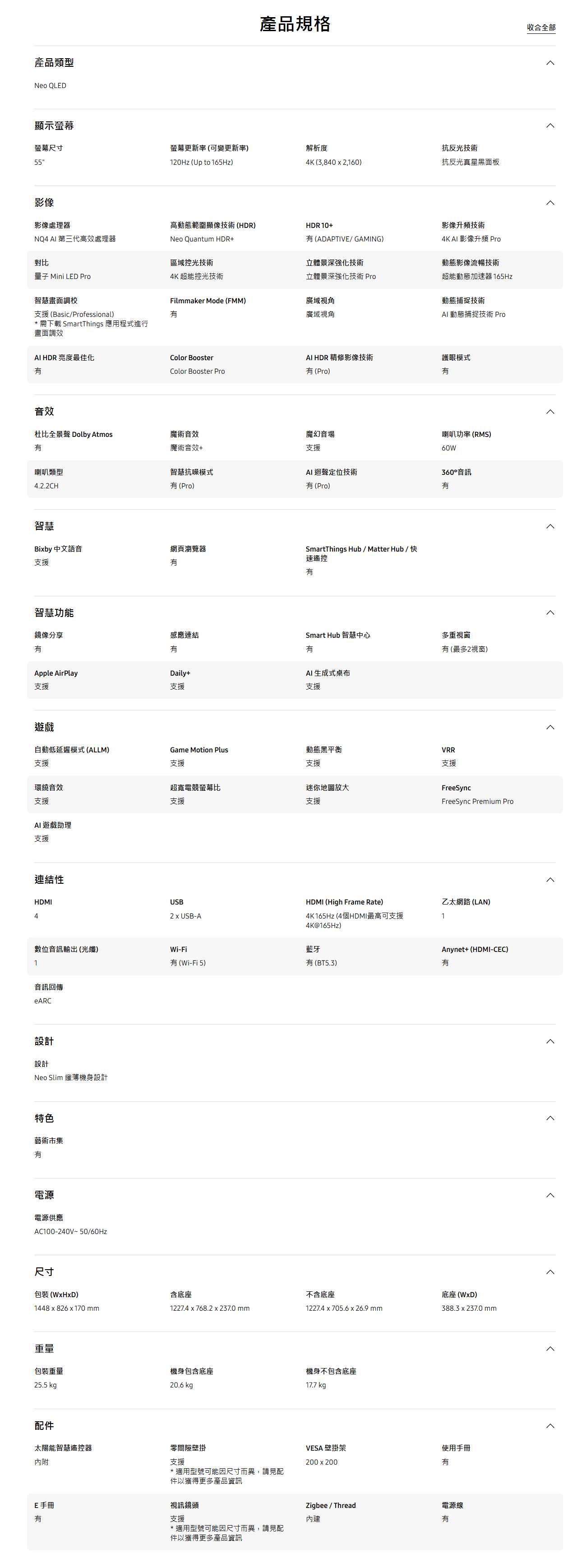 (可議價)Samsung 三星 55吋 Neo QLED QN90F 4K智慧顯示器 2025(QA55QN90FAXXZW)