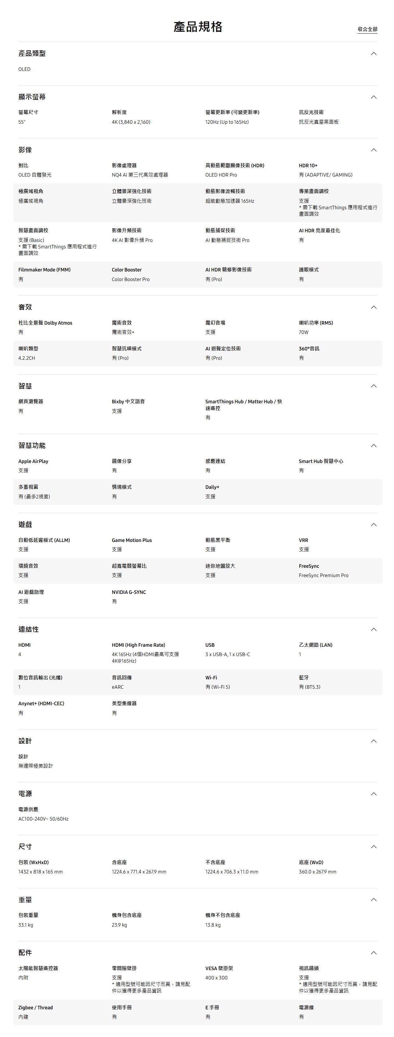 (可議價)Samsung 三星 55吋 OLED S95F 4K智慧顯示器 2025(QA55S95FAXXZW)
