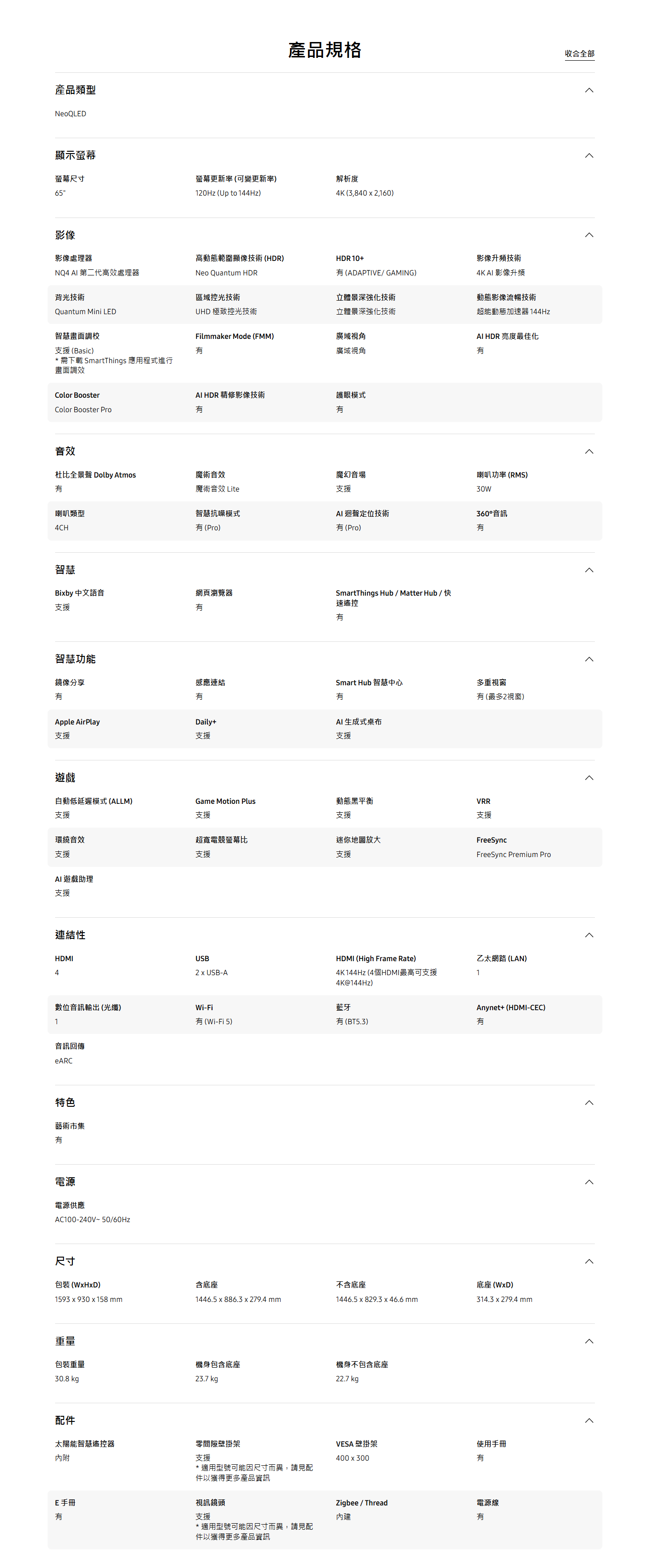 (可議價)Samsung 三星 65吋 Neo QLED Mini LED QN80F 4K智慧顯示器 2025(QA65QN80FAXXZW)