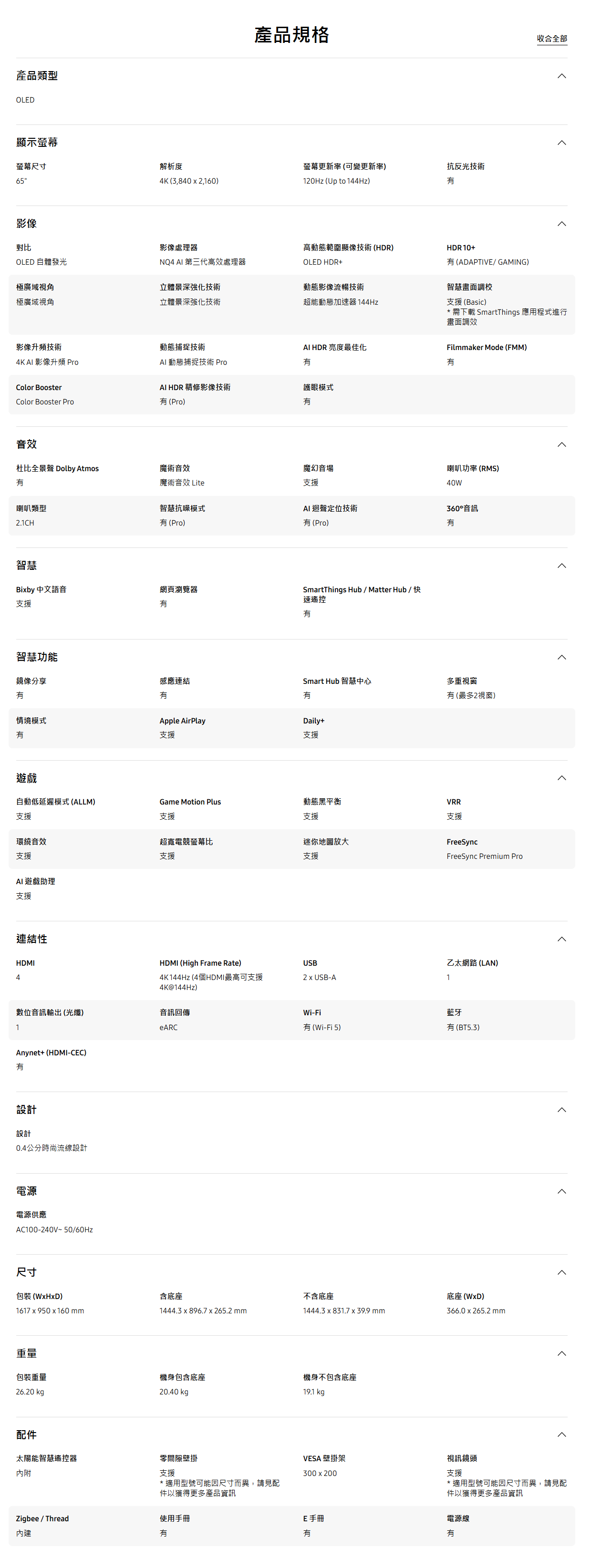 (可議價)Samsung 三星 65吋 OLED S90F 4K智慧顯示器 2025(QA65S90FAEXZW)
