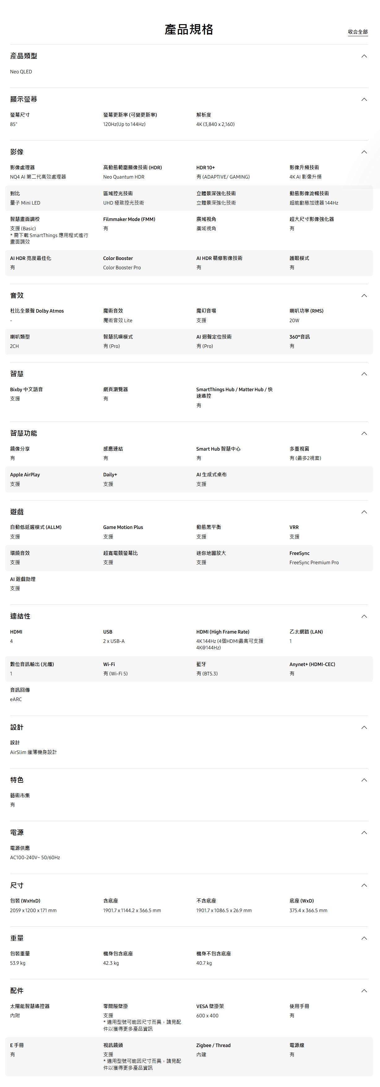 (可議價)Samsung 三星 85吋 Neo QLED QN70F 4K智慧顯示器 2025(QA85QN70FAXXZW)