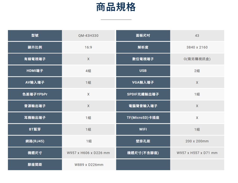 (可議價)HERAN 禾聯 43吋 4K QLED 液晶顯示器(QM-43H330)