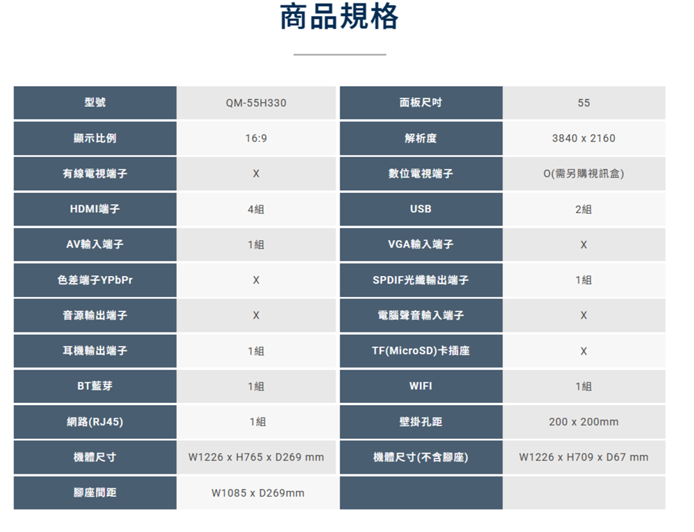 (可議價)HERAN 禾聯 55吋 4K QLED 液晶顯示器(QM-55H330)