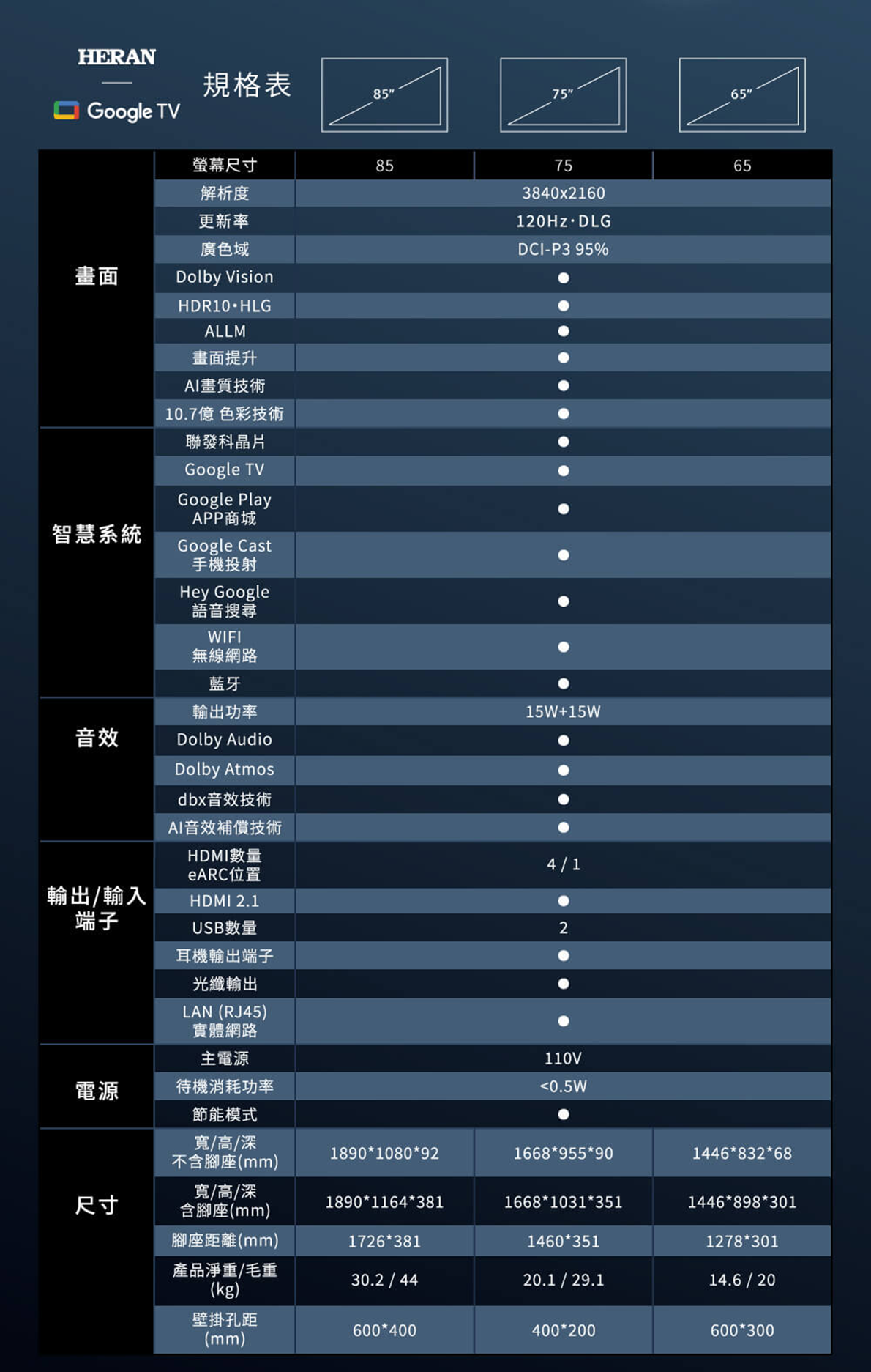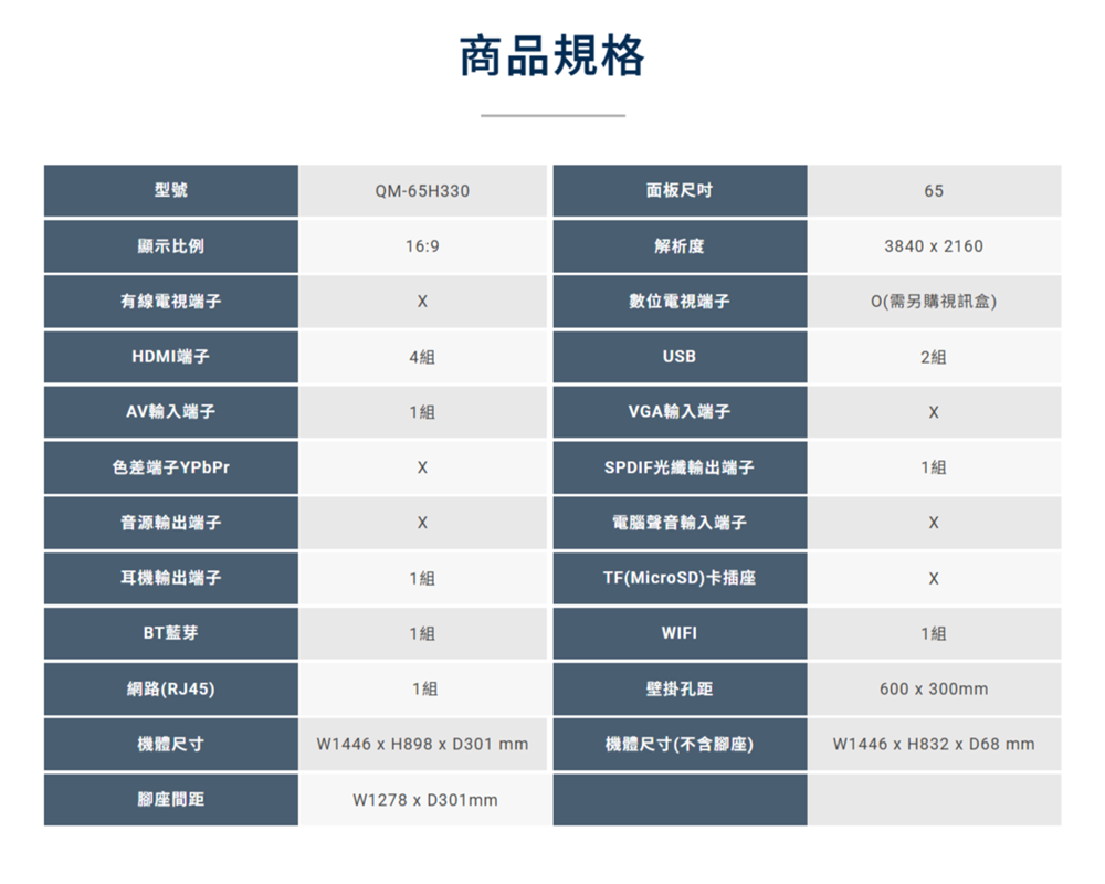 (可議價)HERAN 禾聯 65吋 4K QLED 液晶顯示器(QM-65H330)