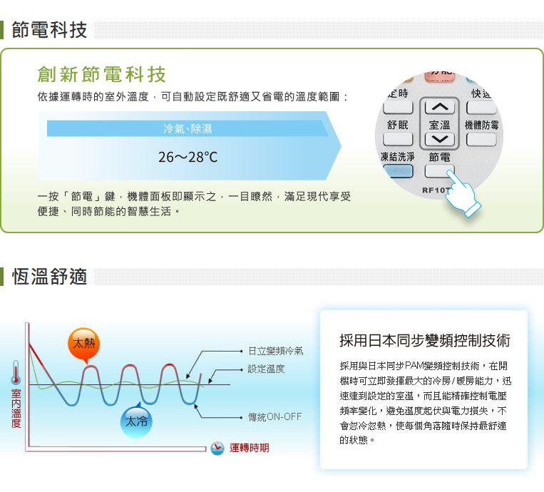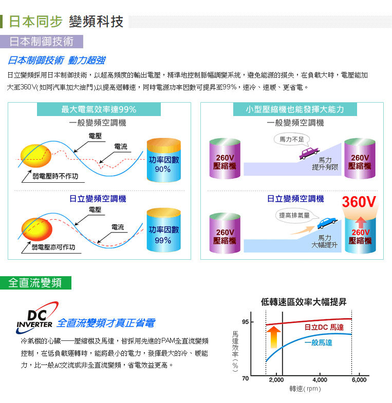 創新節電科技 ● 採用與日立同步PAM變頻控制技術
