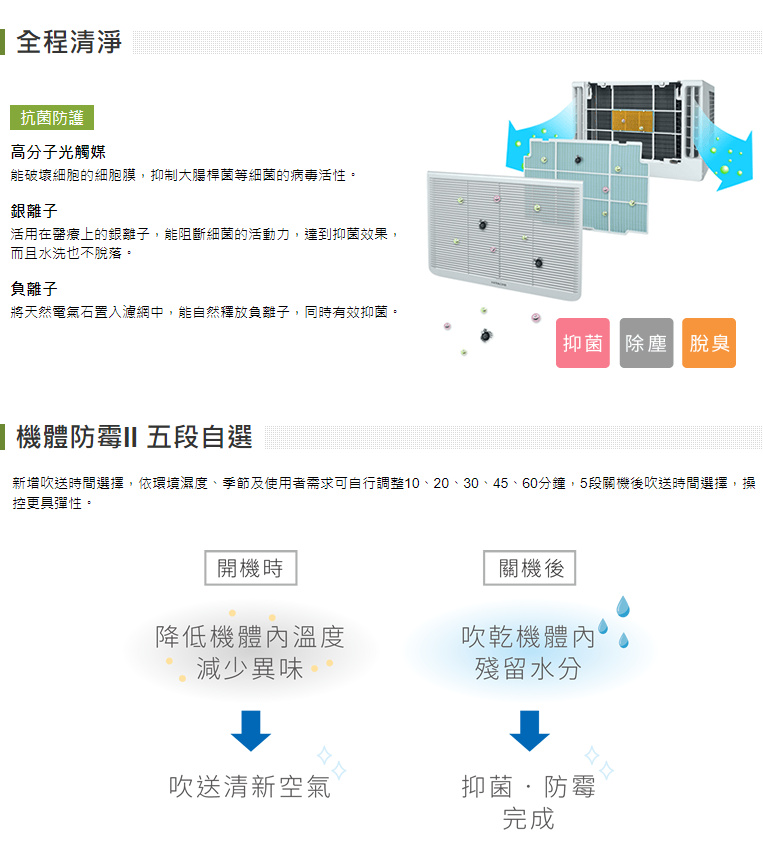 面板可直接用水清洗,徹底清潔,確保冷氣品質