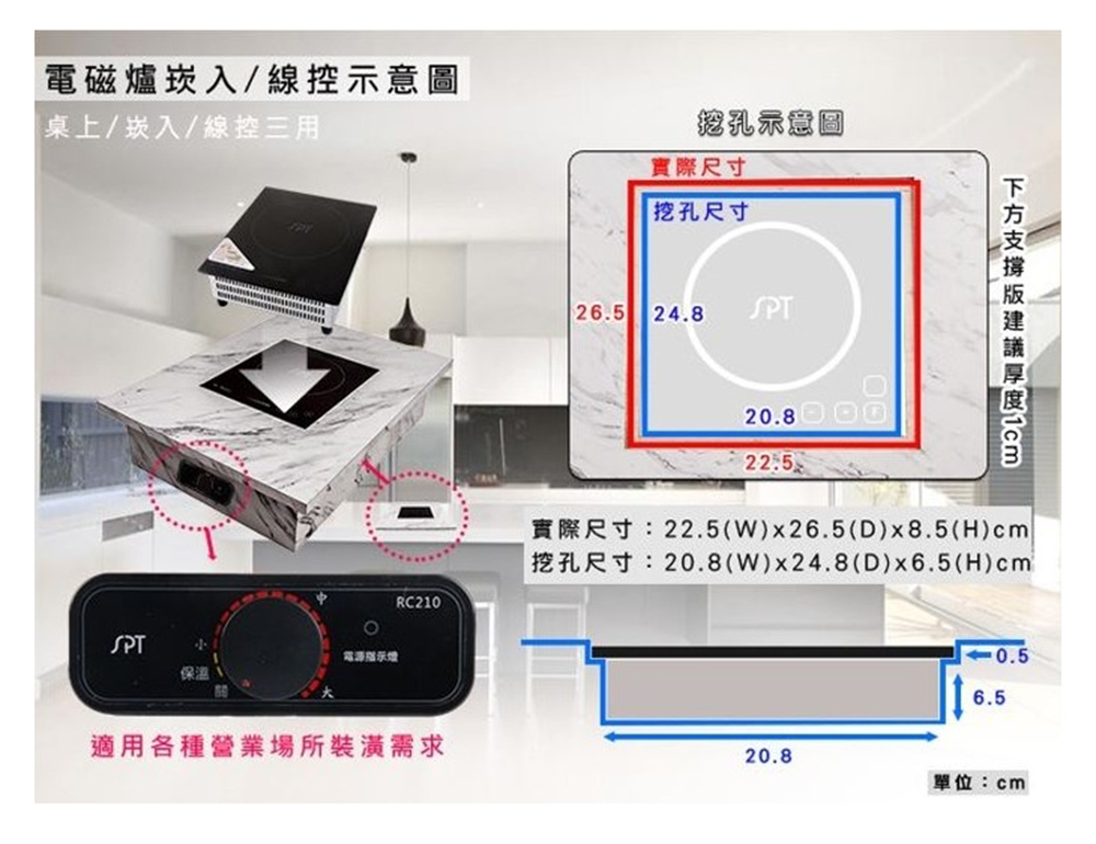 挖孔尺寸:20.8(W)x24.8(D)x6.5(H)cm