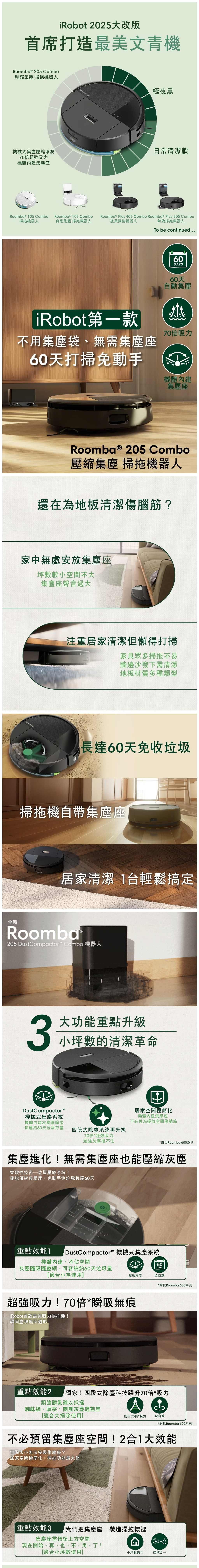 iRobot Roomba 205 Combo 壓縮集塵 掃拖機器人(極夜黑)