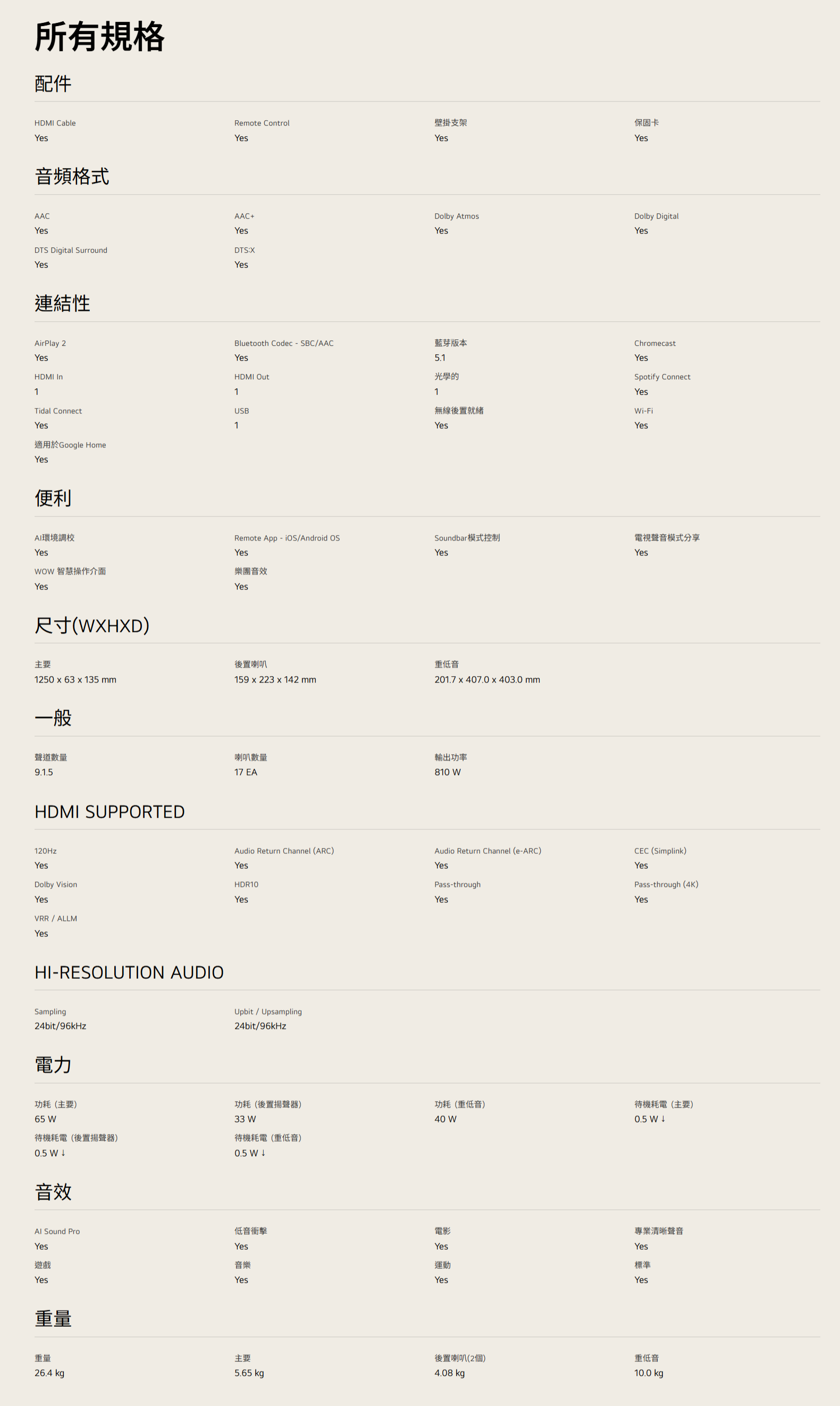 9.1.5 聲道立體環繞音效,提供極致沉浸、