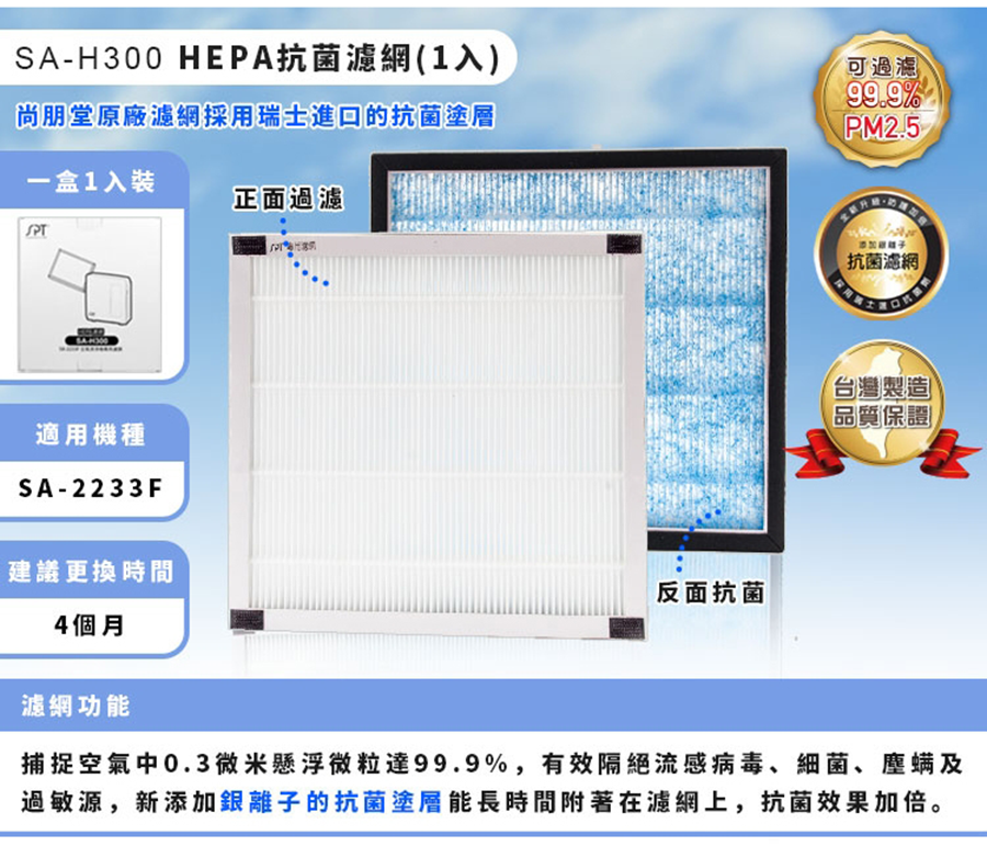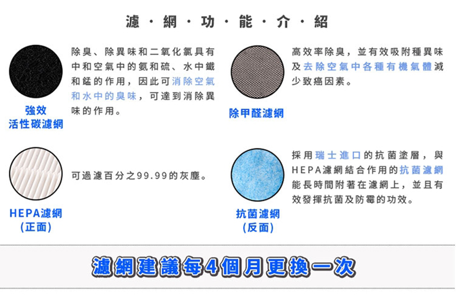 功能:捕捉空氣中0.3微米懸浮粒達99.99%