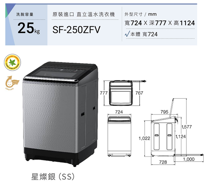 25kg大容量 大物輕鬆一次洗淨