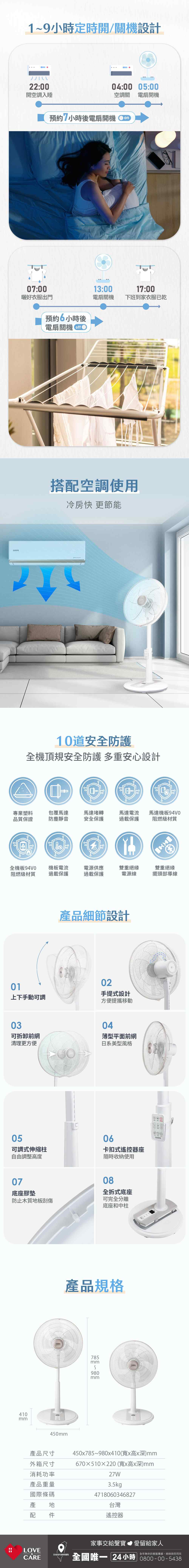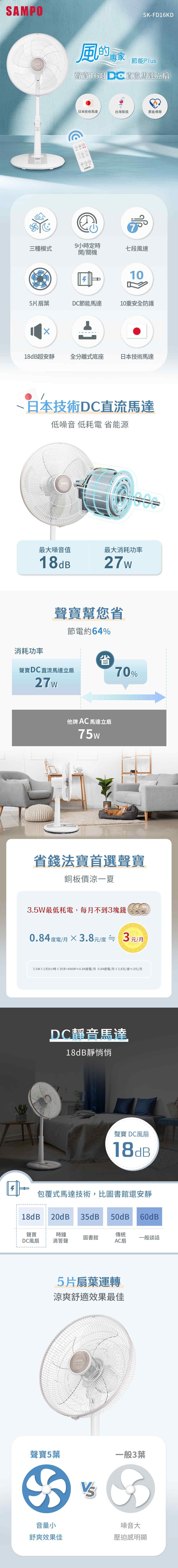 SAMPO 聲寶 16吋 DC直流馬達 遙控節能風扇(SK-FD16KD)