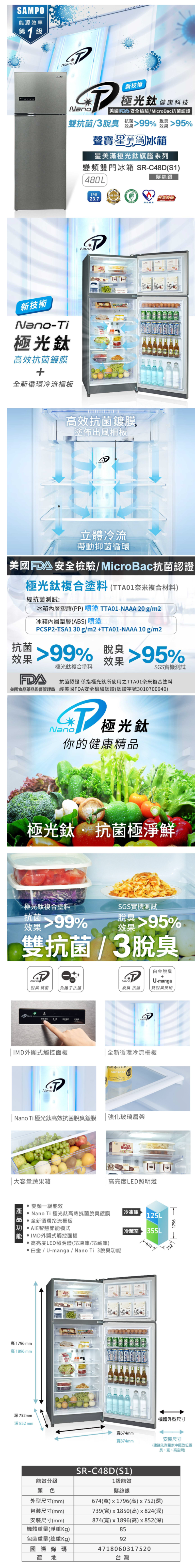 有效內容積:480L