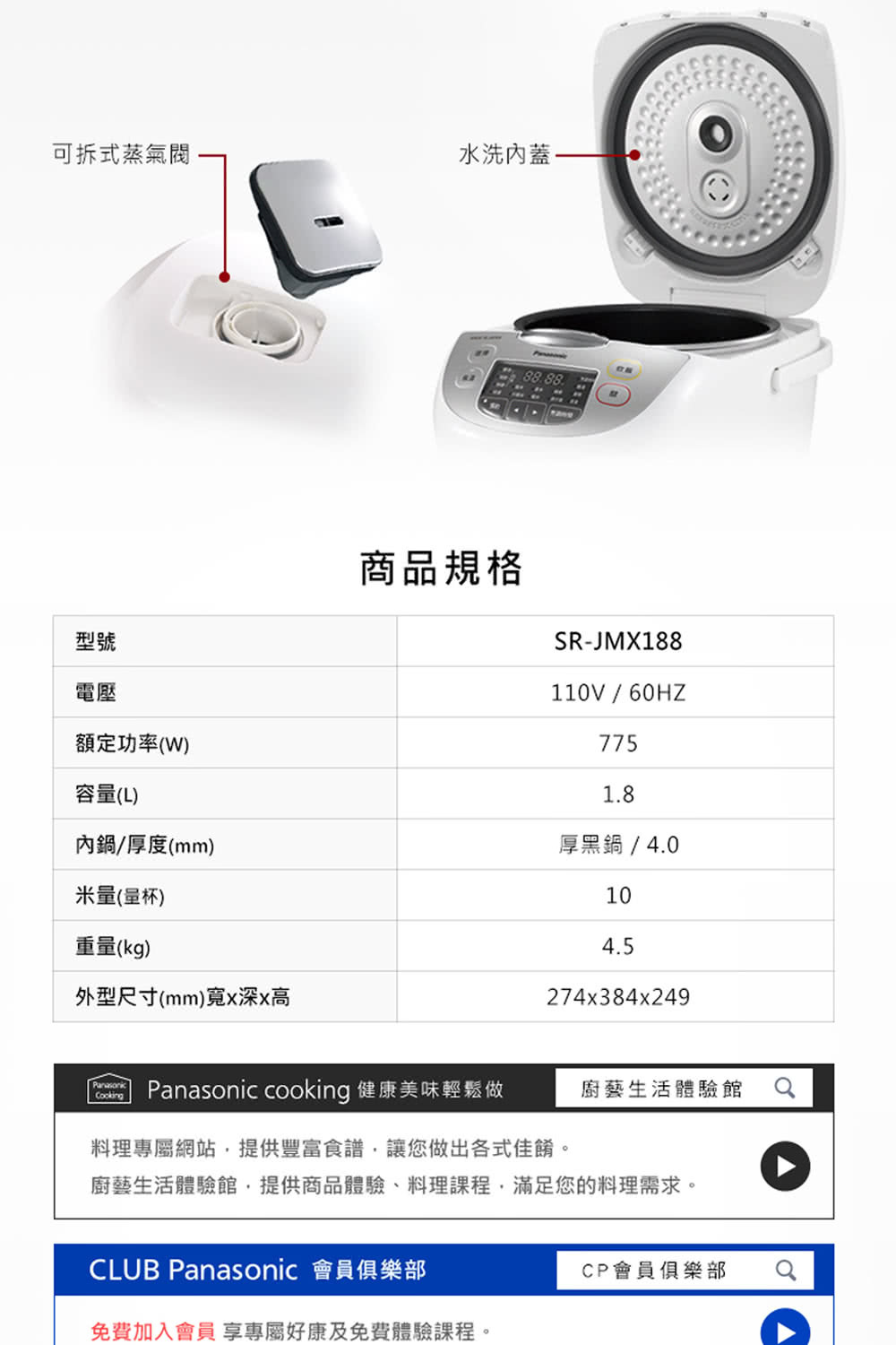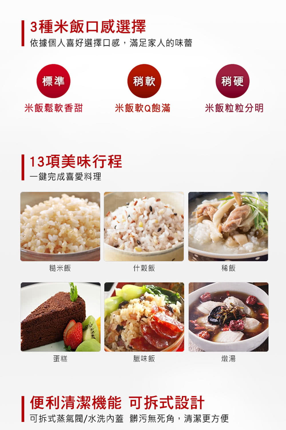 可拆洗內蓋、蒸氣蓋