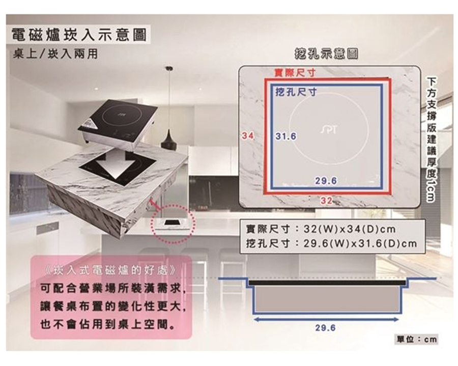 挖孔尺寸:29.6(W)x31.6(D)cm