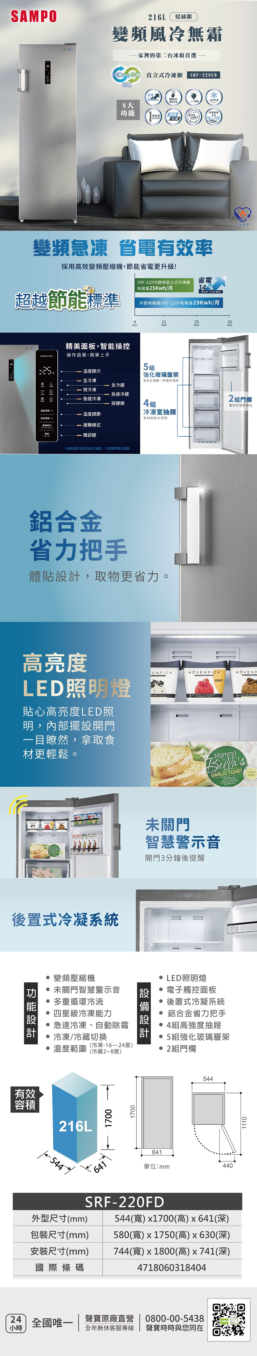 變頻壓縮機、自動除霜、急速冷凍
