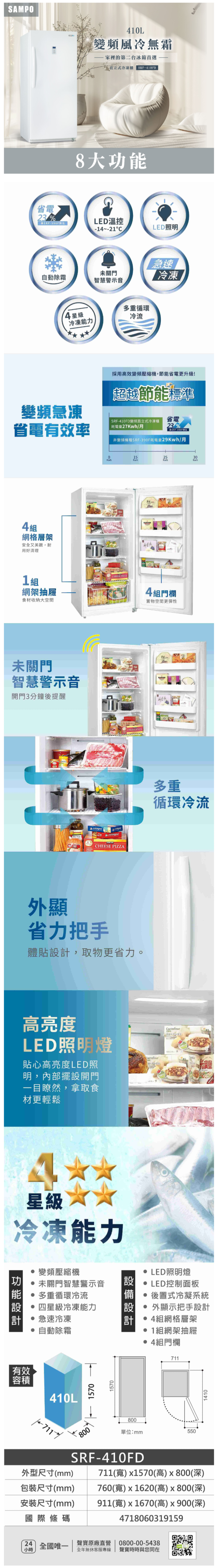 變頻壓縮機、自動除霜、急速冷凍