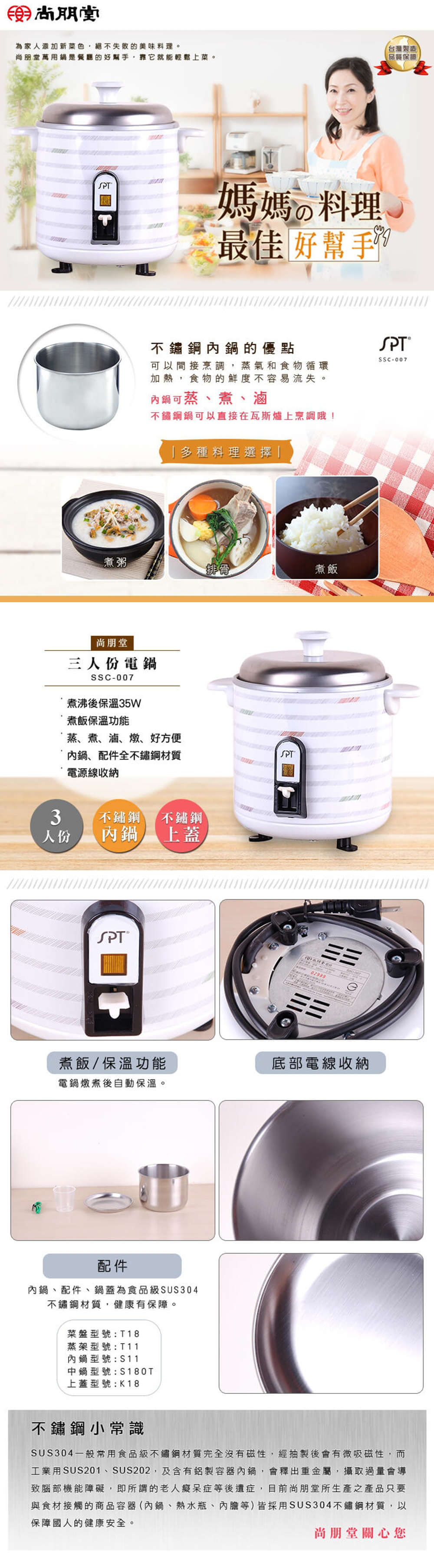 內鍋、配件全不銹鋼材質